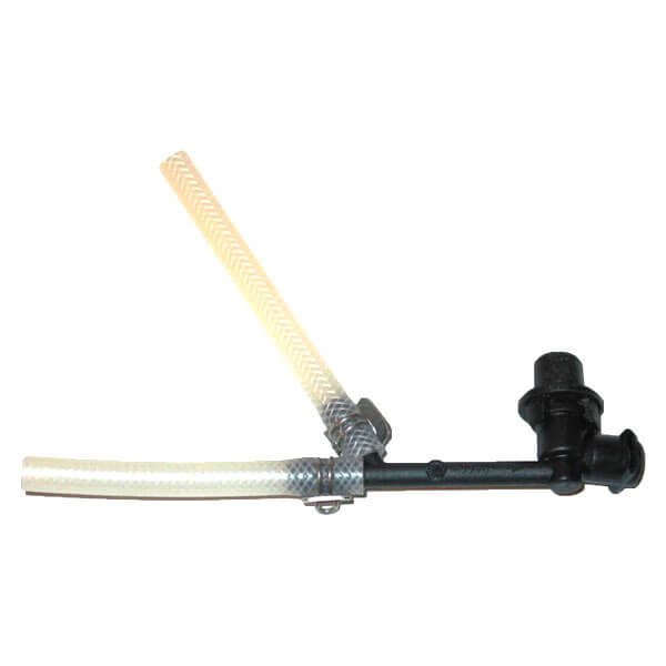 Auslaufventil in Y-Form, komplett mit Gewebeschläuchen und Schlauchschellen.