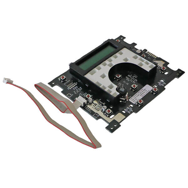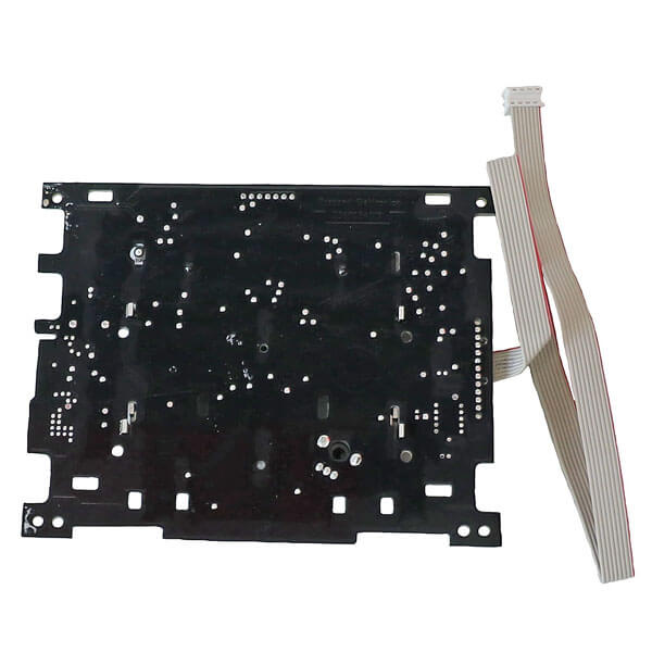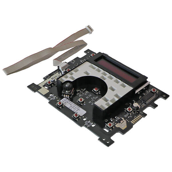 Bedienplatine mit Kabel und Stecker. Die Platine befindet sich vorne am Gerät.