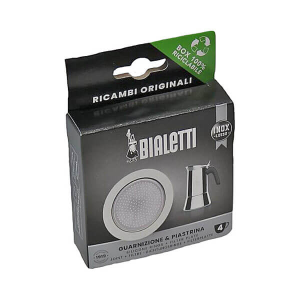 Original Bialetti Dichtungsringe und Filtersieb für 4 Tassen Edelstahl Espressokocher