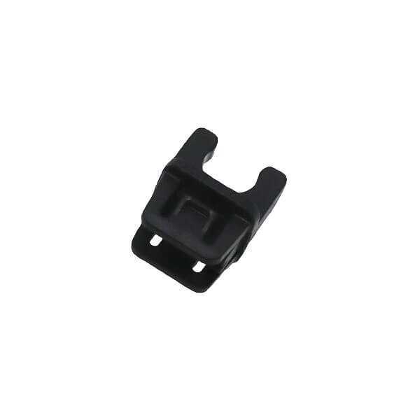 An diesem schwarzen Halter aus Kunststoff wird der Milchschlauch befestigt.
