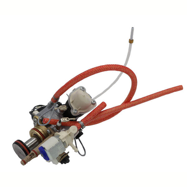 Der Thermoblock / Boiler mit Piston wird mit Kolben, Dichtungen, Auslaufstutzen, Magnetventil, Funktionsventil