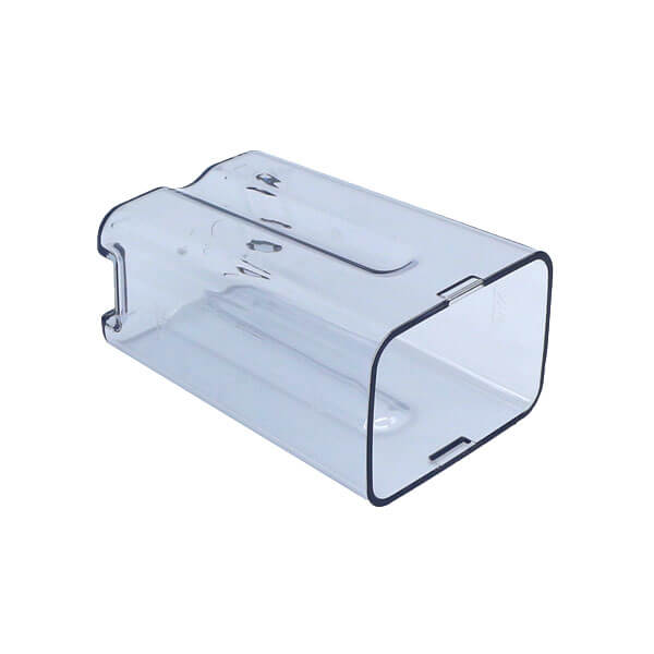 Milchbehälter zu Milchkaraffe aus transparentem Kunststoff.