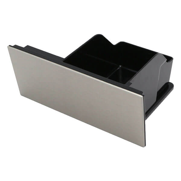Der Satzbehälter wird komplett mit Blende aus Edelstahl geliefert und fängt den Kaffeesatz nach dem Brühvorgang auf.